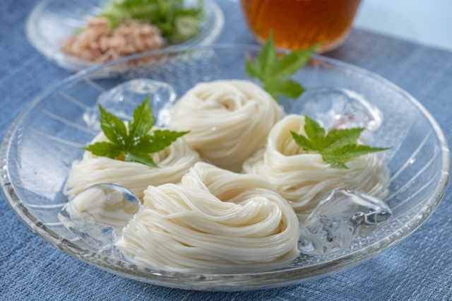 よく冷やし氷と一緒に盛り付けてだすそうめんも氷に作用されます。